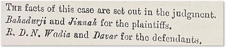 Mr. Jinnah appeared as the Plaintiff’s lawyer in a trademark dispute, in the case of The West End Watch Company v. The Berna Watch Company in 1910 before the Bombay High Court.